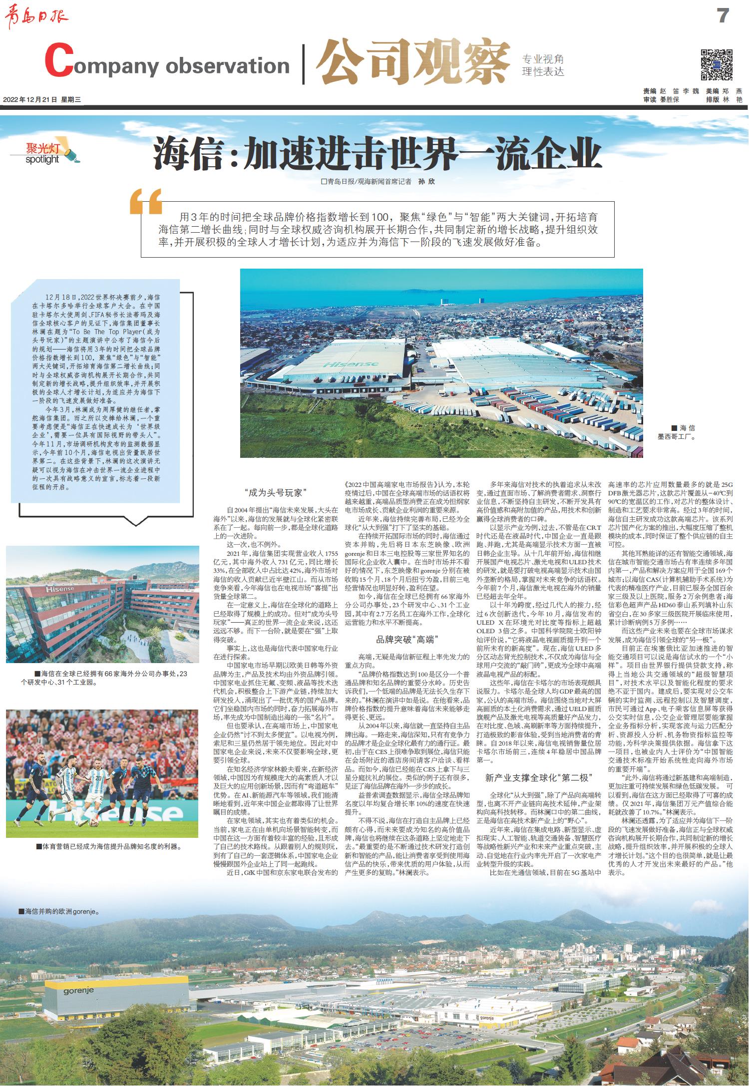 海信:加速进击世界一流企业