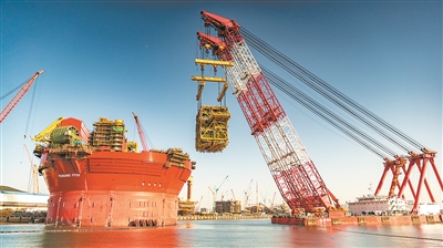 ■11月29日,我国建造的规模最大、智能化程度最高的圆筒型FPSO(浮式生产储卸油装置)——企鹅FPSO,在青岛西海岸新区完工交付。