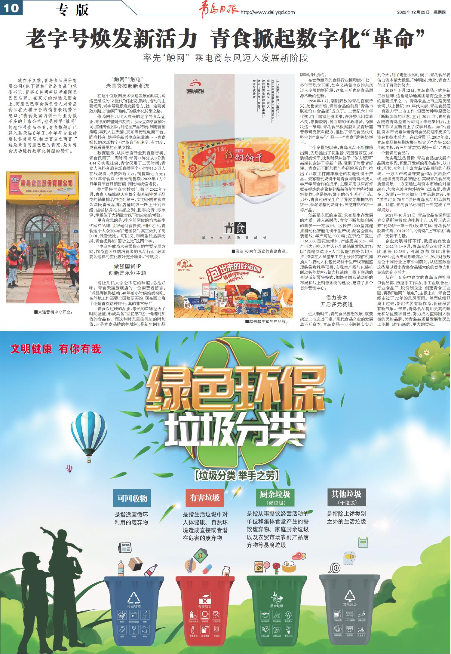 作为陪伴几代人成长的老字号食品企业,青食的转型是成功的。从设立网络营销公司、搭建专业团队,到挖掘产品特质、制定营销策略,再到入驻天猫、京东等传统电商平台,瞄准抖音、快手等新兴电商流量池……青食掀起的这场数字化“革命”有速度、有力度,更有看得见的业绩支撑。