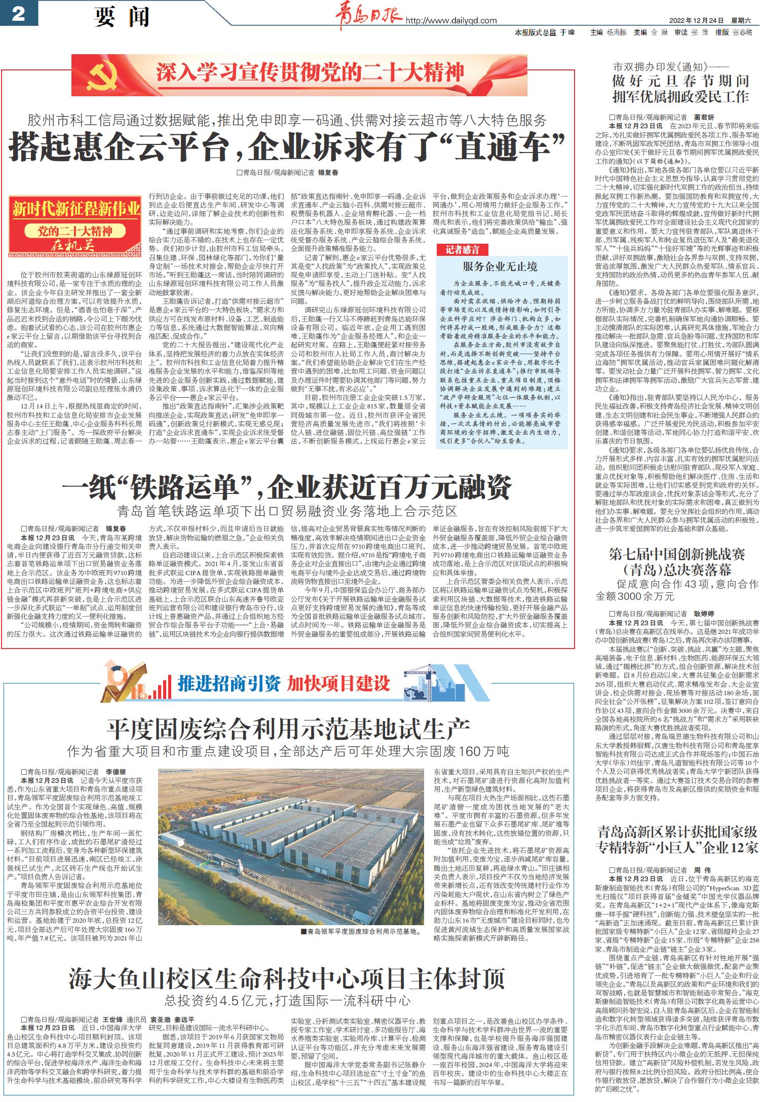 青岛高新区累计获批国家级专精特新“小巨人”企业12家