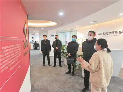 ■日前,青岛市律师行业党委副书记马新河一行到山东良建律师事务所调研,了解律所党建工作、业务开展等情况,并进行座谈交流。青岛市雷锋精神研究会向良建律所赠送了锦旗,以感谢律所在雷锋精神研究和活动开展方面提供的支持。