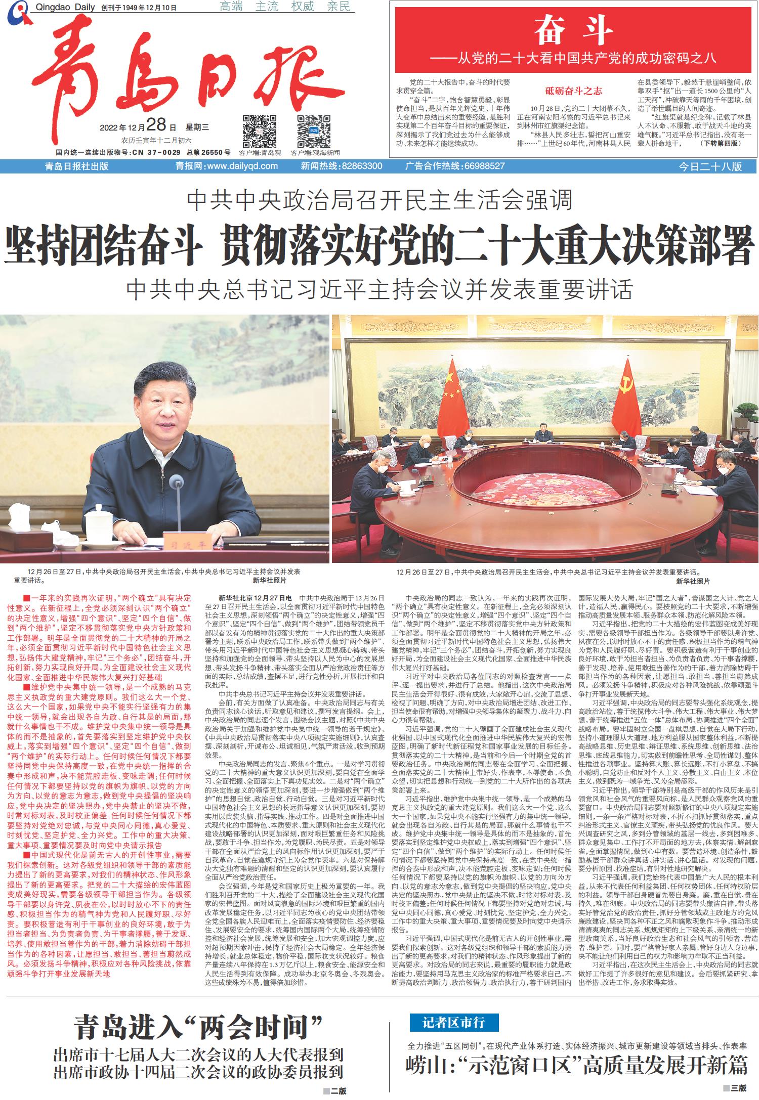 坚持团结奋斗 贯彻落实好党的二十大重大决策部署