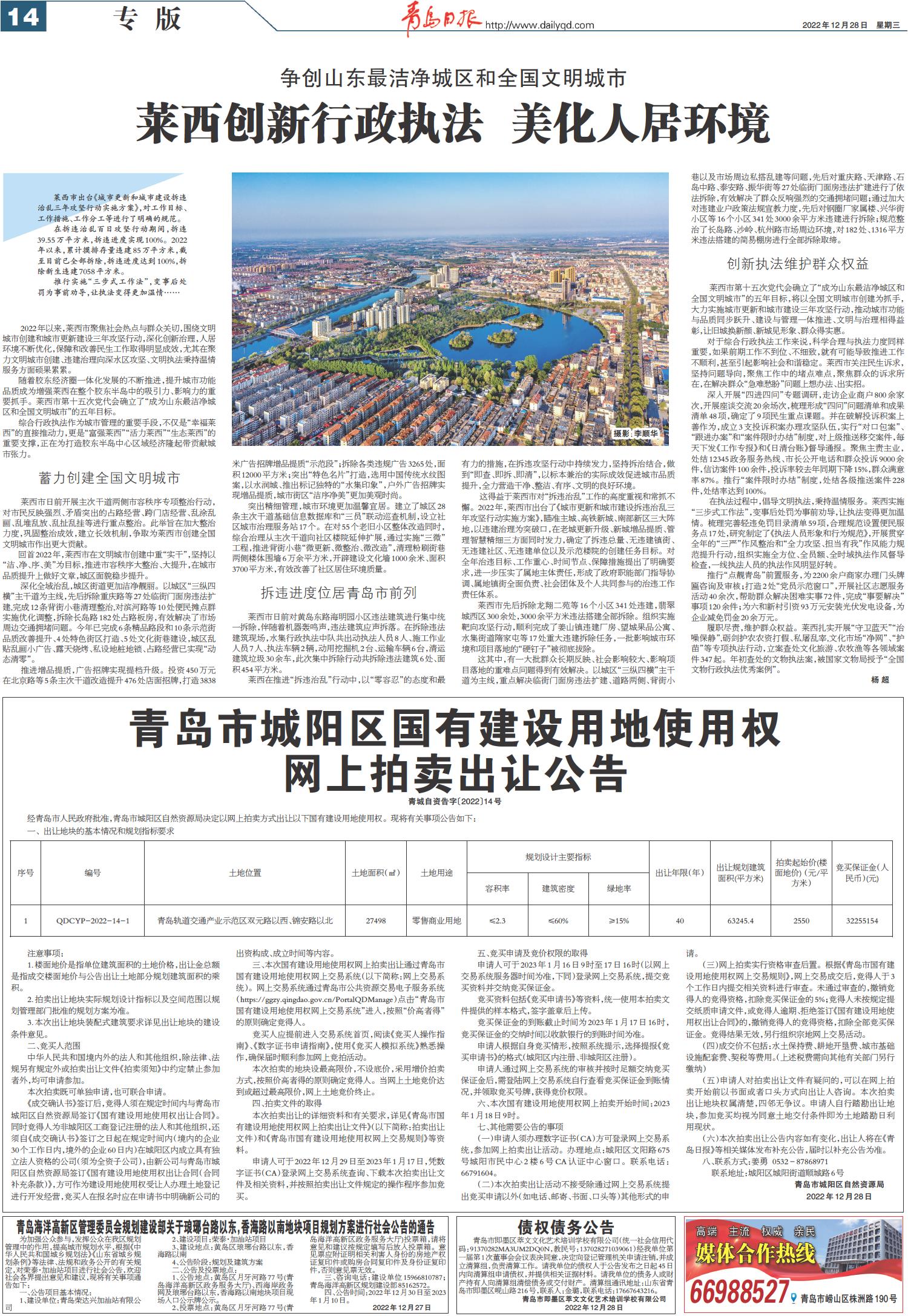 青岛市城阳区国有建设用地使用权网上拍卖出让公告