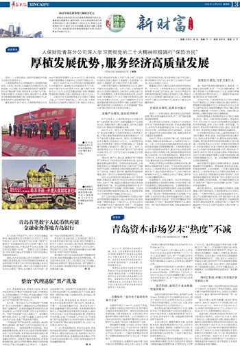 截至2022年12月18日,人保财险青岛分公司2022年度实现保费收入达40.037亿元,成为青岛首家年度保费收入突破40亿元的财产保险公司。