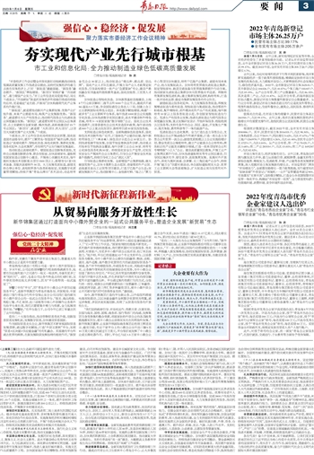 卞成表示,市工业和信息化局将按照会议部署,强化制造强市战略导向,提升“工赋青岛·智造强市”城市品牌,推动制造业“高端化提升、智能化改造、绿色化转型、集群化发展、服务化延伸、生态化集聚”,夯实现代产业先行城市发展基础。