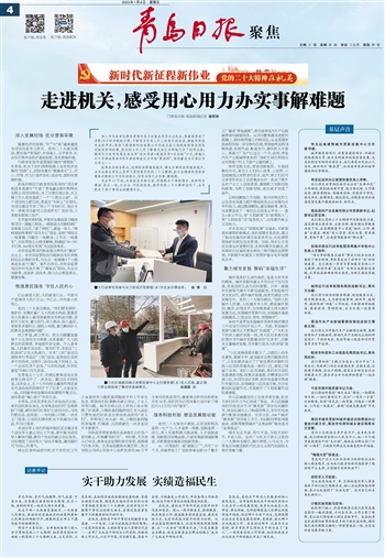 在青岛各级各机关,这样的场景越来越多,群众办事的流程越来越少。全市各级各单位认真学习贯彻落实党的二十大精神,把大会精神和所联系服务对象的工作实际相结合,切实为他们办实事、解难题。