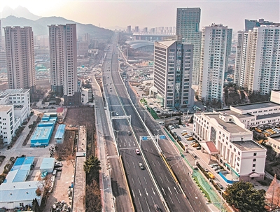 海尔路-银川路立交工程主线桥通车后。