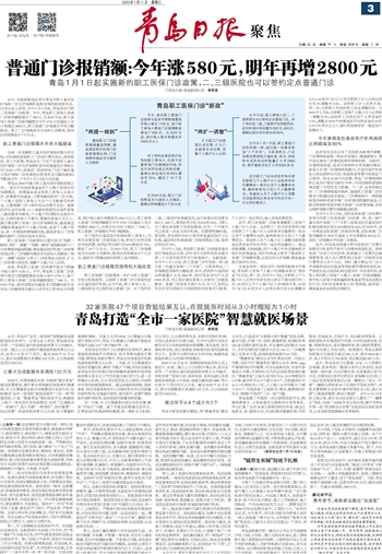 青岛不断强化数字赋能,将“健康青岛”微信公众号,打造成为“互联网+医疗健康”服务品牌。截至目前,开展门诊、住院、健康管理、疫情防控等120余项便民惠民服务,平台建档居民数达1600万,月平均预约挂号就诊人次达150万,门诊缴费线上交易30万笔,查询检查检验报告60万份。
