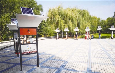 ■莱西市人民广场健身器材年久失修被曝光后,该广场重新安装了健身器材。 邱 正 摄