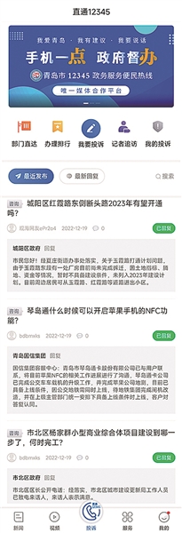 ■2022年,青岛日报社与市12345政务服务便民热线联合搭建的“直通12345”平台共转办8000余条来自市民、企业的“急难愁盼”,部门反馈率达96%以上。