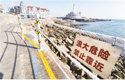 ■崂山区海游路一段滨海步道七八十米长的护栏缺失被曝光后,相关部门在该处新增了护栏。