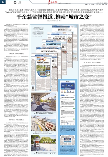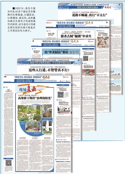 ■2022年,青岛日报共刊发40多个版面百余篇舆论监督报道,以曝促改,以督提效,建设性、高质量的舆论监督有力有效倒逼作风转变,成为青岛市创建全国文明典范城市等重点工作落实的有力抓手。
