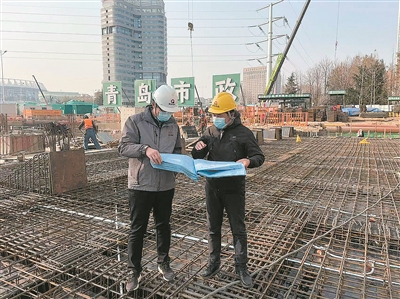天刚刚亮,王培培戴上安全帽,裹着厚厚的冬季工装,便开始了每日例行的现场施工管理巡查。“一定要留意基坑监测情况”“塔吊指挥工有没有在岗”“注意做好混凝土测温记录”……每到一个施工象限,他都会事无巨细地检查施工安全、进度、质量等事项,并一一叮嘱现场施工负责人。