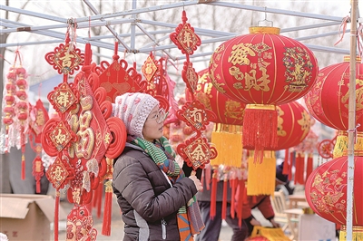 ■泊里大集上,市民在选购灯笼等节日用品。 俞方平 摄