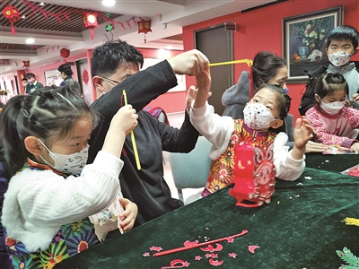 ■孩子们学做小兔儿花灯。 王 雷 摄
