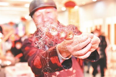 ■高家糖球上裹着丝丝的糖线。 王 雷 摄