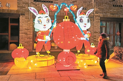 ■市民从兔年主题花灯前走过。 韩 星 摄