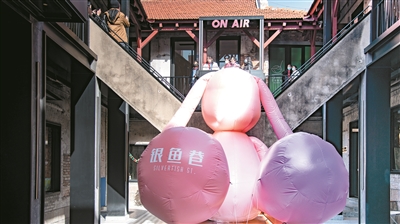 ■银鱼巷“上新”巨型兔子玩偶。刘 栋 摄
