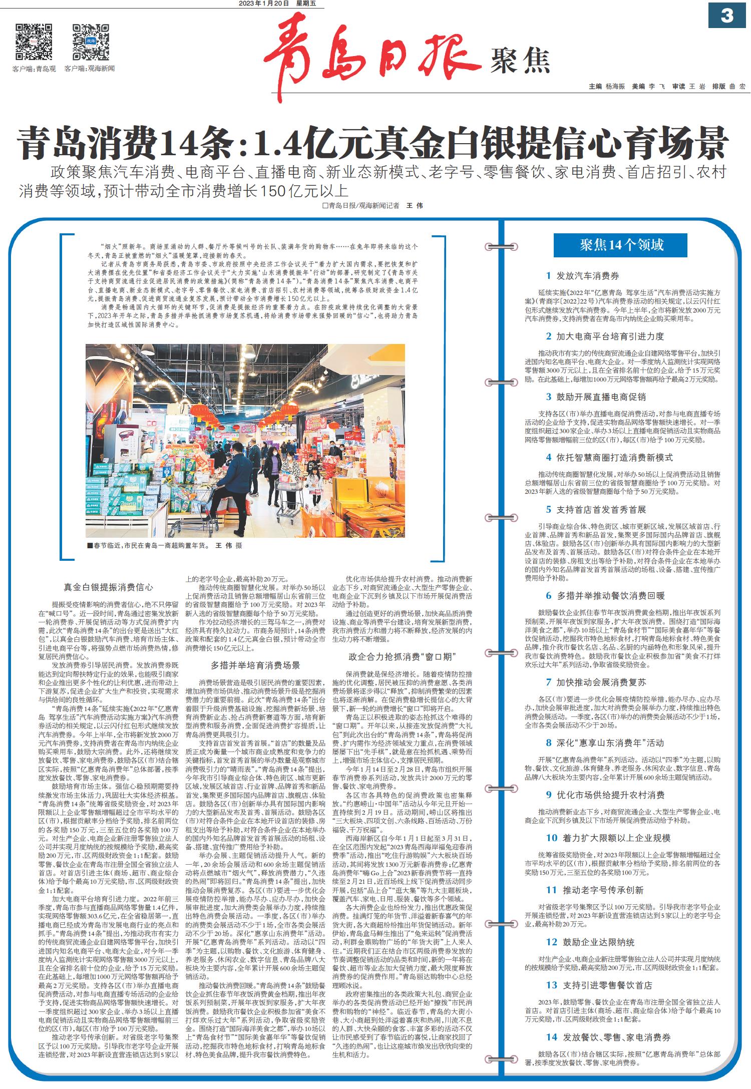 青岛消费14条:1.4亿元真金白银提信心育场景