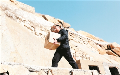不过,补给物资要搬运到海拔70多米的千里岩海洋站综合楼,仍然要靠人力。路是贴着海岛石壁修建的300多级台阶,呈“之”字形。数百斤的物资,要来回搬运十几趟。记者“爬”完台阶,来到千里岩海洋站时,已气喘吁吁、两腿发软。而这条路守岛观测员们每天要走五六趟,早已习以为常。