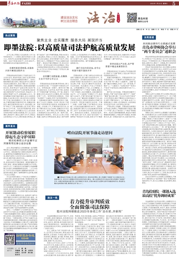 陈刚说,2022年,全院各部门准确把握新时代法院工作使命任务,紧扣“司法作风能力提升年”工作要求,全力开展“为群众办实事示范法院”创建活动,在各自岗位上苦干实干,克服疫情不利影响,政治建设、服务大局、审执主业、队伍建设等工作取得新进展。他要求,2023年,全体干警要高举习近平新时代中国特色社会主义思想伟大旗帜,全面深入学习贯彻党的二十大精神,坚持党建引领开放创新改革,持续推进法院各项工作“走在前、开新局”,为推动现代化上合新区高质量发展提供更加坚强有力的司法服务和保障。一要不断加强政治建设,坚持不懈用习近平新时代中国特色社会主义思想凝心铸魂,把深入学习贯彻党的二十大精神作为重大政治任务抓紧抓好,深刻领悟“两个确立”的决定性意义,坚决做到“两个维护”。二要服务保障中心大局,聚焦现代化上合新区、城市更新和城市建设等中心工作,找准服务的着力点、结合点,自觉把法院工作放在中心大局中谋划推进,以更实的工作举措、更优的司法服务,为加快构建“1+2+3+N”发展新格局提供更高质量的司法服务和保障。三要全力提升办案质效,坚持问题导向,狠抓案件质量、效率、效果,紧盯结案率、结收比等关键指标,重点做好均衡收结案工作,整治卷宗归档不及时等顽疾,确保审判执行良性运转,为一季度工作开好局、起好步。四要着力强化队伍建设,全体干警一方面要苦练内功、增强履职本领,着力提高理论调研、审判实务研究等司法能力,另一方面要落实全面从严管党治警要求,持之以恒推进党风廉政建设,锻造忠诚、干净、担当的法院铁军。