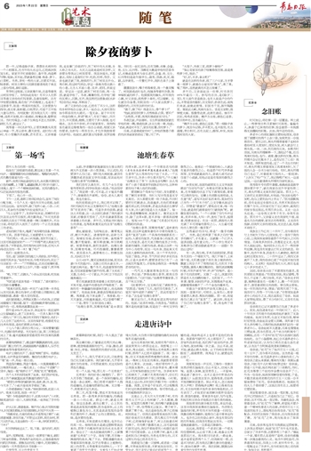 他到底都说过什么,我已经不记得了,当时的阅历不足以支撑我对什么“池塘生春草”有更多的了解。可是许多的获得,就是这么不经意,这一点点回忆渗进了我的意识里面,好像春天雪化了,天井里滴滴答答地承着檐上的水滴。多年后,又想起当时施先生的讲座,也再找来谢灵运的这首“池塘生春草”——