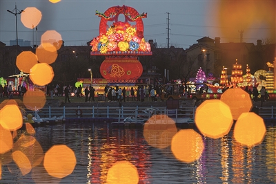 ■左图:在胶州少海湖畔举办的迎春花灯会为游客带来一场视觉盛宴。于 滈 摄