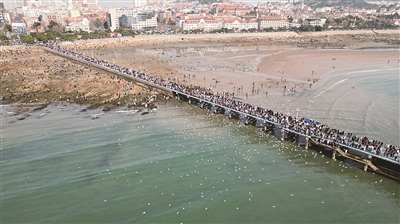 ■春节假期,栈桥的游客络绎不绝。王 雷 摄
