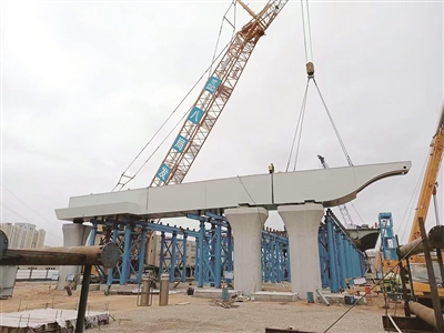 跨海大桥高架路二期工程已基本完成下部结构施工,上部结构钢箱梁已完成85%