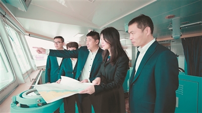 在山东华宸融资租赁有限公司的展示厅内,记者看到公司名下的33艘运载干散货的船舶行驶位置示意图,标识灯如星宿般闪烁,告知中央指挥室当下船舶的航行动态。华宸融资租赁的总经理张超介绍,部分船舶的员工作业室内还安装了高清摄像头,可以实时查看作业场景。