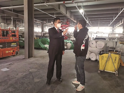 ■ 日前,青岛市检察院第八检察部检察官来到位于城阳区的某服装厂,检察官一边现场查看消防整改情况,一边听取施工方的进度介绍。