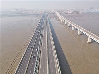 青兰高速双埠至河套段女姑口跨海特大桥改扩建后。
