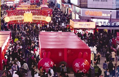 ▲2月4日,全国迎春消费季——2023“老字号嘉年华”暨“惠享山东消费年”启动仪式在台东步行街举行。