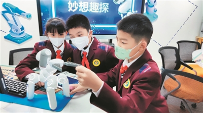 ■新学期,嘉峪关学校全新建设的人工智能实验室投用。2022年,青岛启动全市中小学“人工智能实验室普及工程”,目前全市累计已有488所学校的人工智能实验室投用。工程完工后,全市累计将建成人工智能实验室900余间。 王沐源 摄影报道
