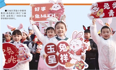 ■李沧区崇礼小学开展“崇祥玉兔启新章 礼赞匠心向未来”2022-2023学年度第二学期非遗进校园开学典礼,让学生们感受传统非遗文化魅力。 张 晋 张 鹰 摄影报道