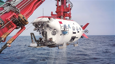 ■科研人员利用“蛟龙”号载人潜水器开展海洋科考。
