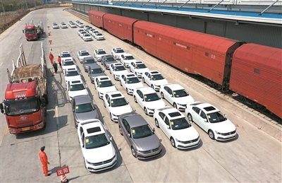 汽车产业的蓬勃发展,离不开专业高效的物流配套服务。在即墨济铁物流园汽车发货区,数百辆由一汽—大众(青岛)华东基地生产的新宝来以及奥迪A3一字排放,有序装运。经信息录入后,290辆汽车于当晚10点通过铁路运出,4天后就可到达成都。据了解,春节后开工以来,即墨济铁物流园商品车运输量已超过4500辆。