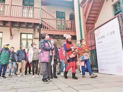 ■香港游客在导游的带领下游逛百年里院广兴里。