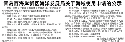 青岛西海岸新区海洋发展局关于海域使用申请的公示