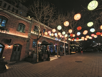 ■青岛持续对老城区历史文化街区按照“修旧如旧”的原则进行保护性修缮。图为入夜后的大鲍岛文化休闲街区。 王 雷 摄
