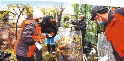 ■玫瑰里小区居民利用厨余垃圾和落叶进行堆肥。