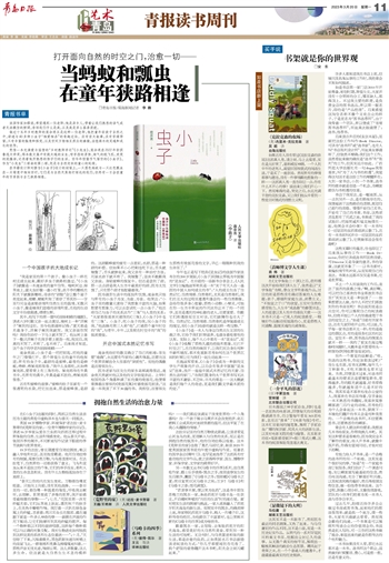 今年也正是写下经典《昆虫记》的法国作家法布尔的200岁诞辰,《小虫子》则被业界视为中国版的“昆虫记”。在日前的一场新书分享会上,《人民文学》主编施战军称其是一本“关于有天人合一基因的中国人如何成长的书”:“人的成长包含了自然记忆、自然情感、自然寄托,尤其是自然寄托,我们在长大的过程里遭遇和逢会的一些自然物象,会给你很多身心慰藉,那些小动物、小精灵,可能在你一生当中所起的作用比你忘不了的一个同学,甚至是遇到的神仙般的老人,还要重要。你跟它们相遇继而交互对话,它们鼓舞你也壮大了你。自然记忆、自然情感、自然寄托是伴随着成长的瑰宝,而《小虫子》捡拾的就是这样一些宝物。”