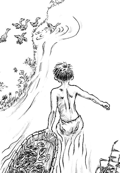还有和蜜蜂的故事:“蜜蜂的肚子里面有一个很透明的水袋,把它扯出来,那是蜜蜂蛋,是甜的。这甜跟蜂蜜的蜜有一点差别,水甜,那是一种甜的补偿。但如果不小心把刺也吃下去,舌头就被螫了,舌头就肿起来,我父亲有一种治疗方法,用尿水涂下就不疼了。我被螫了,坚决不敢跟我父亲说。身陷蜜蜂的报复中。但还是尝到了甜,那一点点甜是我人生当中最美好的甜,因为太饥饿了,只有那个甜才能慰藉着我。”
