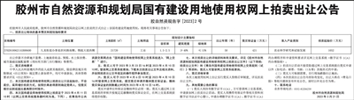 胶州市自然资源和规划局国有建设用地使用权网上拍卖出让公告