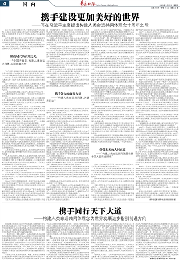人类命运共同体很宏大,关乎人类前途命运;人类命运共同体很具体,寄托着各国人民对美好生活的向往。当理念落地生根,当梦想照进现实,不同国家、不同民族、不同文化的人们感受着合作共赢的力量,增强了团结协作、共创未来的信心与勇气。