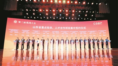 ■第三届儒商大会举行项目集中签约仪式。大会期间,一批投资体量大、技术含量高、带动能力强的项目落户青岛。