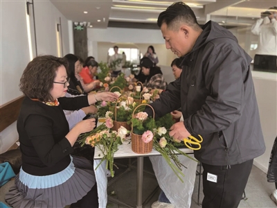 活动现场还精心安排了插花教学,花艺老师从插花流派、色彩搭配、工具使用等方面详细讲解了插花知识,并通过实操介绍了不同花材的修剪及摆放方法。在老师的指导下,家长们充分发挥巧思,将玫瑰花、康乃馨等各种鲜花和绿叶搭配组合在一起,做成了一个个精美的花篮。“非常感谢青岛福彩举办的这次‘喘息活动’,让我很好地排解了压力,未来也更加有信心和力量去帮助孩子。”一位家长拿着自己制作的花篮开心地说道。
