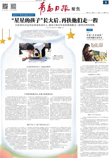 自闭症儿童通常被称作“星星的孩子”,他们像天上的星星,在遥远的夜空独自闪烁。“我们不奢望他能像正常人一样娶妻生子、过完一生。最担心的是如果有一天我们不在了,他们该怎么办?”这是萦绕在所有自闭症患者家长心头的难题。目前,自闭症依然不可治愈,80%的自闭症患者是成年人,他们依靠自身的能力,几乎无法融入社会,随着父母衰老、家庭经济无力再投入,对于这一群体的照料引发社会关注。4月2日是第16个“世界自闭症关注日,让我们将视线投向这些长大了的“星星的孩子”。