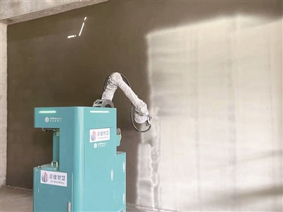 ◀腻子涂料智能施工机器人在青岛建设项目中展开应用。