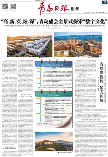 1场主旨论坛、6场主题论坛、2场洽谈会、3场项目路演推介、每天发布数字文化新品……2023青岛数字文化应用发展大会以满满当当的日程安排,探讨以数字化赋能文化产业高质量发展的路径和方案。